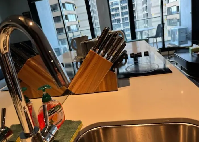 South Bank ist innerhalb von ca. 25 Gehminuten erreichbar. Machen Sie einen ruhigen 10-minütigen Spaziergang ins Herz der Innenstadt von Melbourne City. Etihad Stadium ist circa 5 Minuten vom City-View High Rise 2Br Apt W/Pool, Sauna Gym, Library Near Southern Cross Station Melbourne Cbd entfernt.